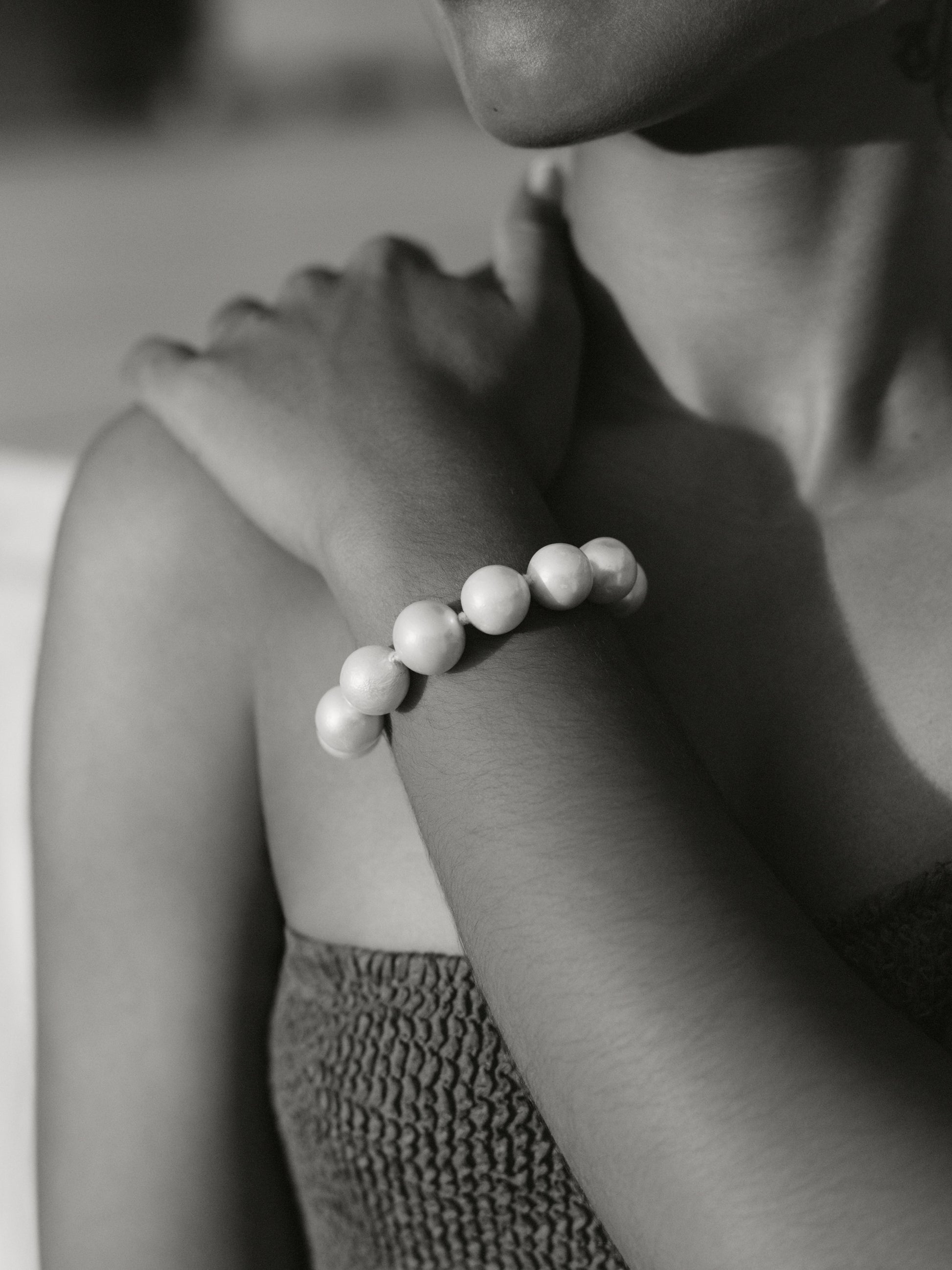 This bracelet is part of the Mint Collection, a sought-after addition to our SS/AW collections and signature one-of-a-kind jewellery. This semi-precious collection offering an exclusive range of honest and minimal styles in pearl, tourmaline, leather and mountain crystal.