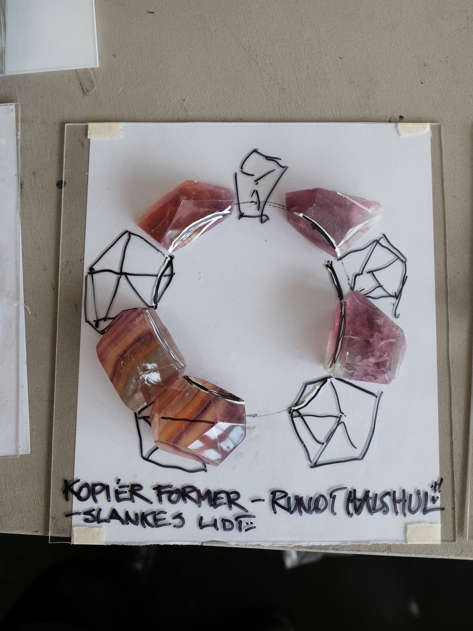 Materials: bog oak, flourite